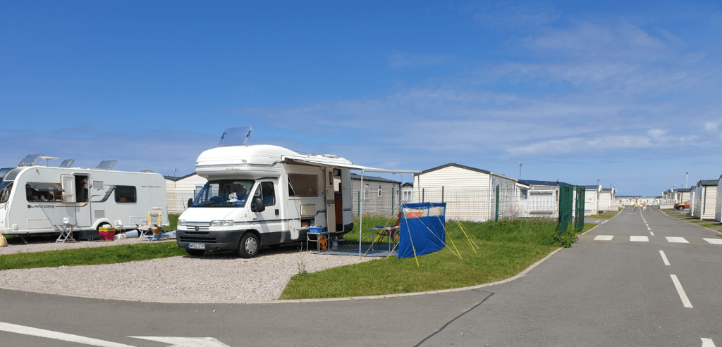 Their touring pitch was number 49, which was just a few yards from the rubbish bin area. On their arrival at midday on the Saturday, the bins were all full and were not emptied till the Tuesday. As you can image it was smelly and rubbish was collecting all around the bins, attracting Seagulls!